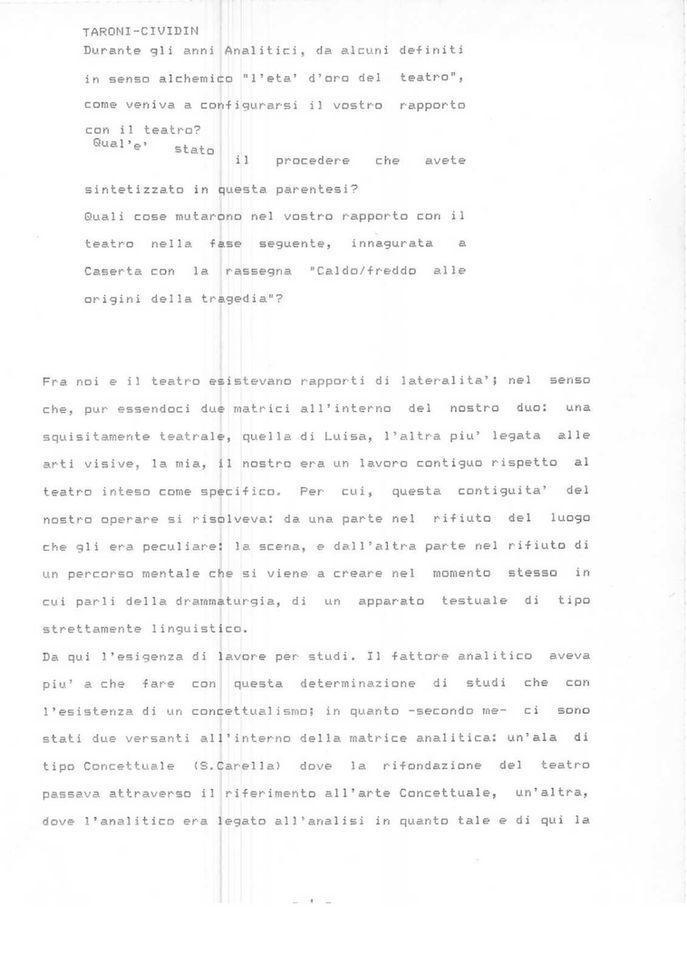 Per un teatro analitico esistenziale, Studio Forma, 1979